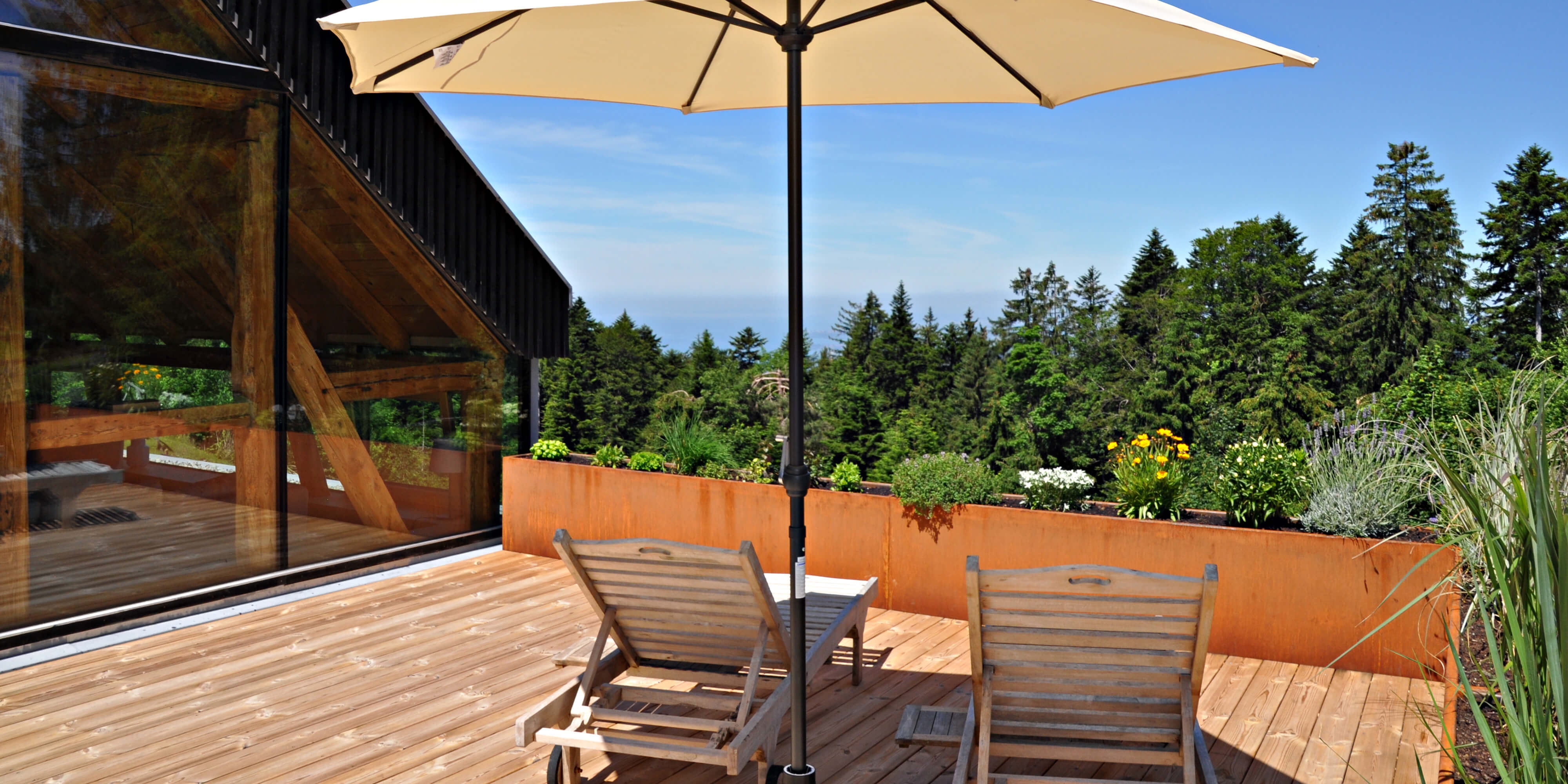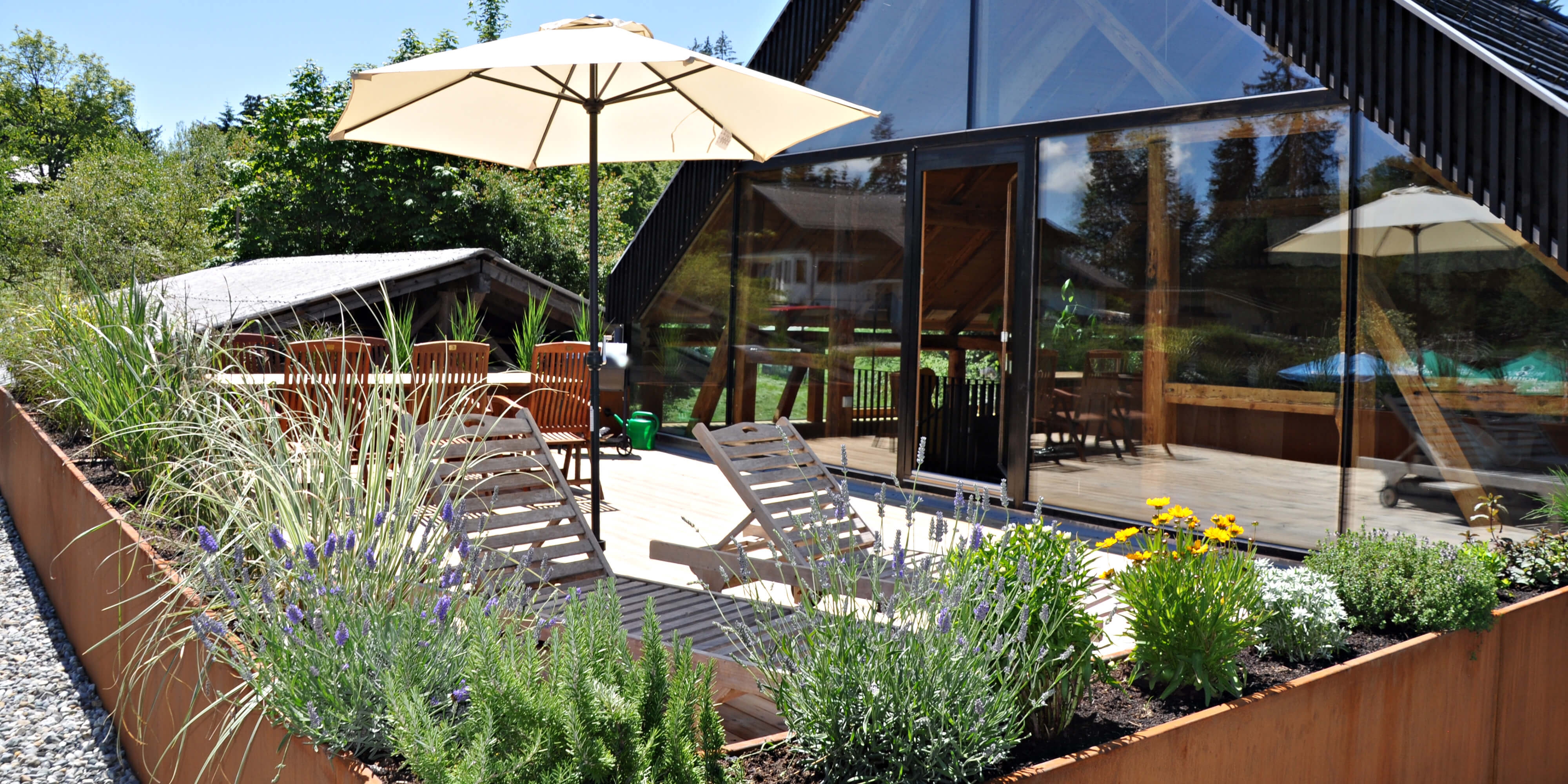 Harmonisch eingebettet in die umliegende Natur, spiegelt es die moderne Vorarlberger Architektur wieder.