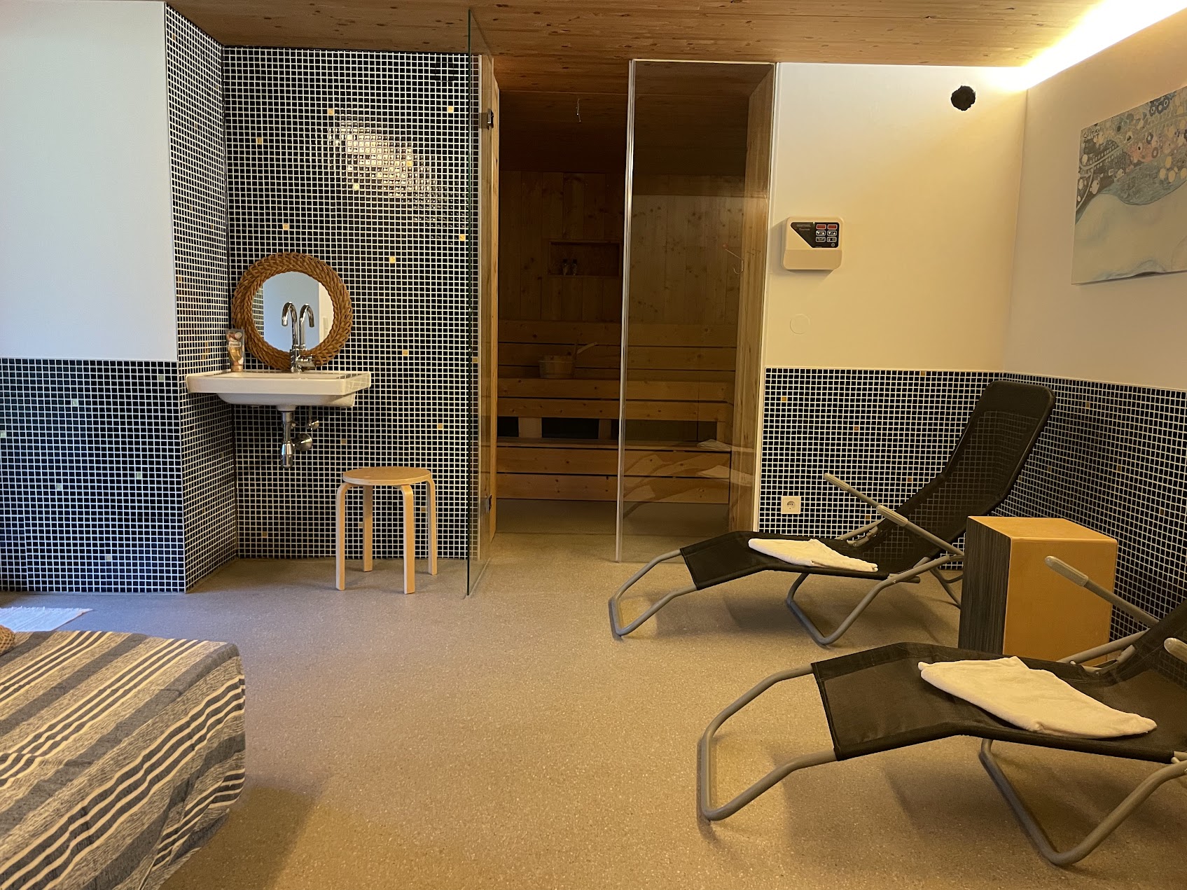 Entspannen Sie in unsere großzügig angelegten hauseigene Saunal inkl. Ausgang ins Freie, die Sauna bietet Platz für bis zu 8 Personen.